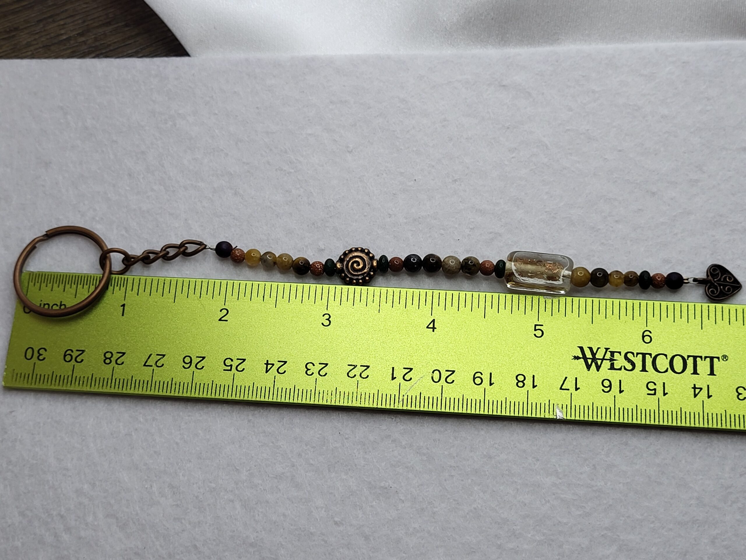 Be the first to review “Bronze heart with glass & semi precious gemstones, key chains; medium copper ring.”
