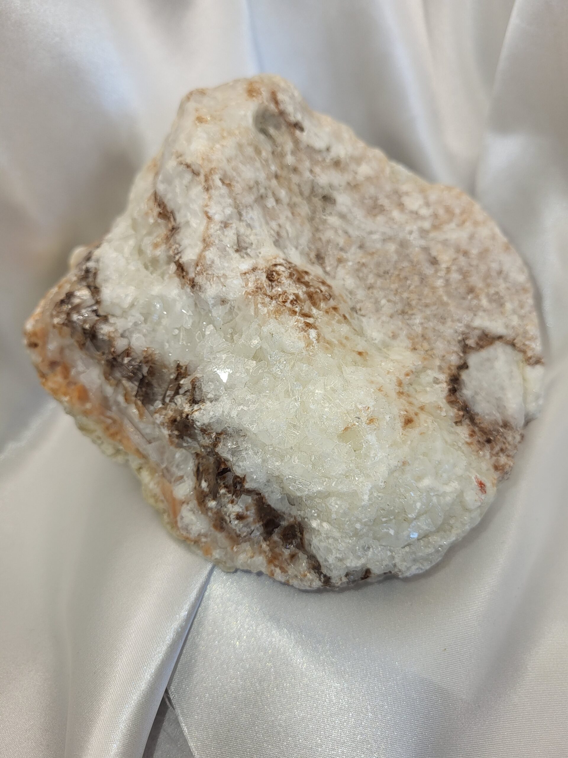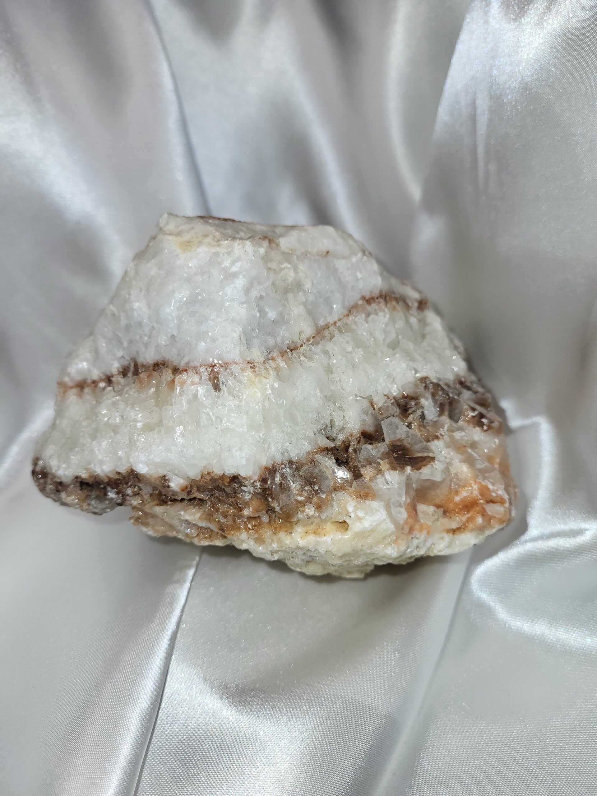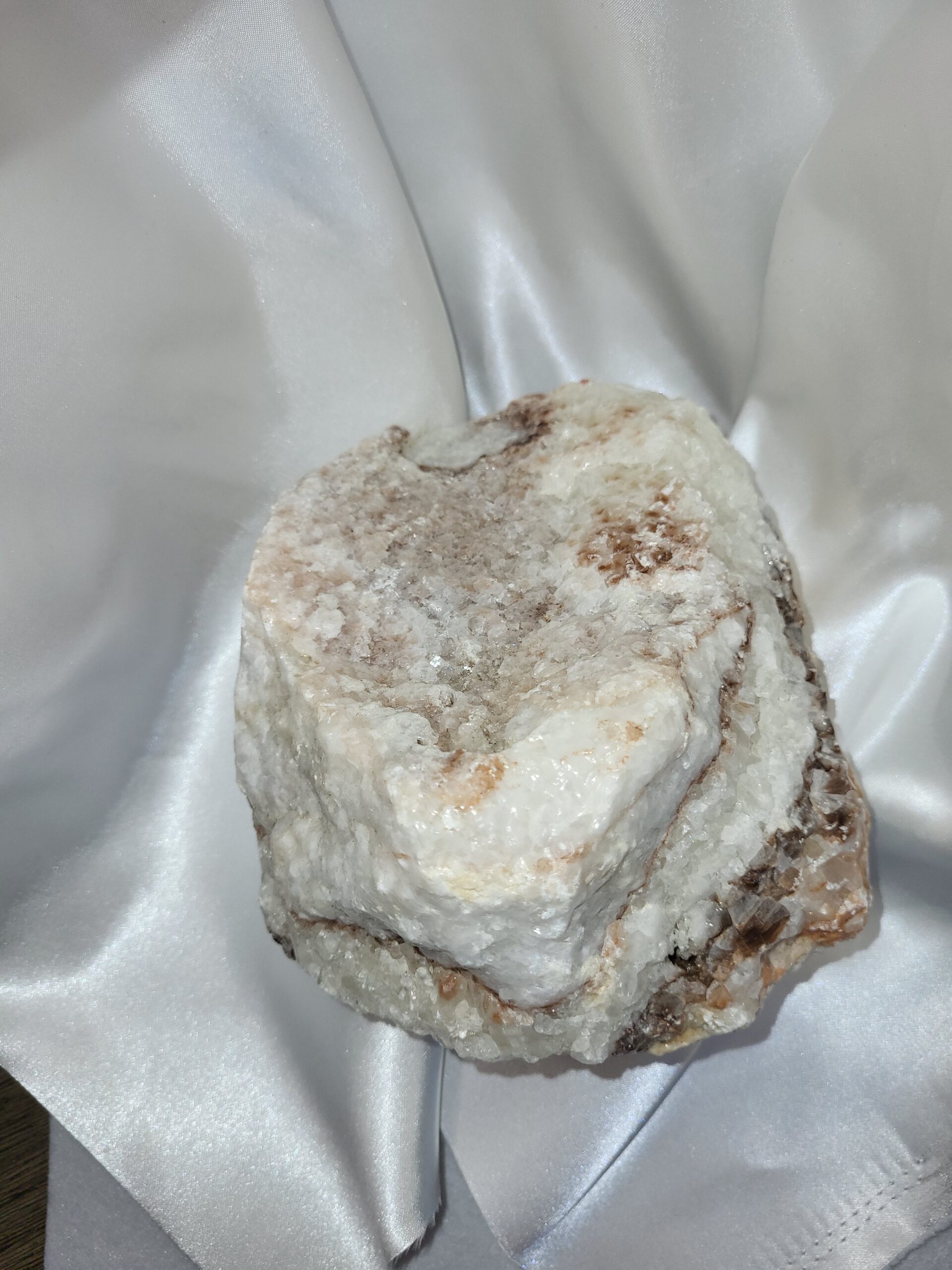 Natural Rose Banded Calcite free standing stone. 5.3lbs; Approx. length 5.5inches, width 6.5inches, height 4.5inches.
