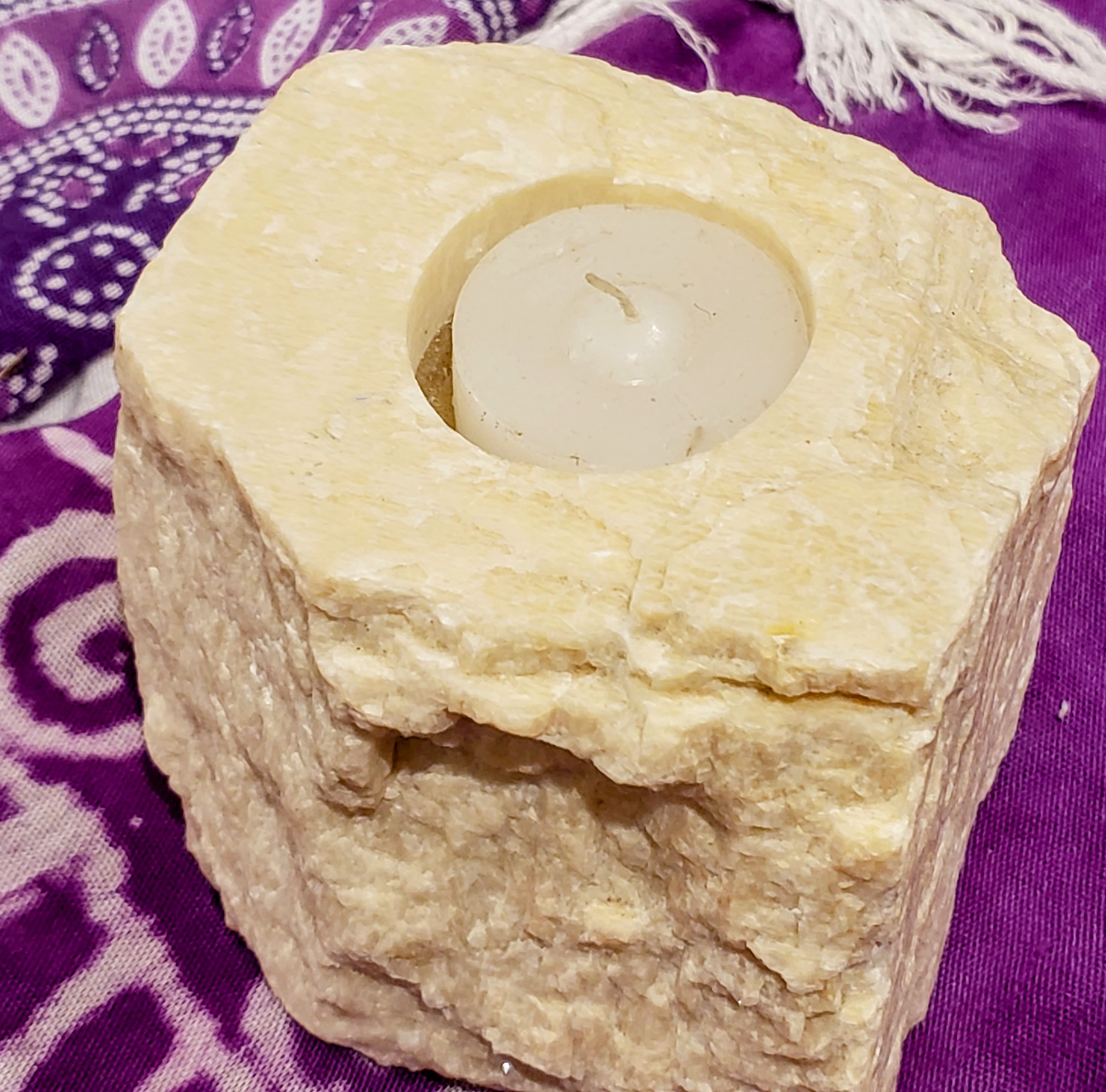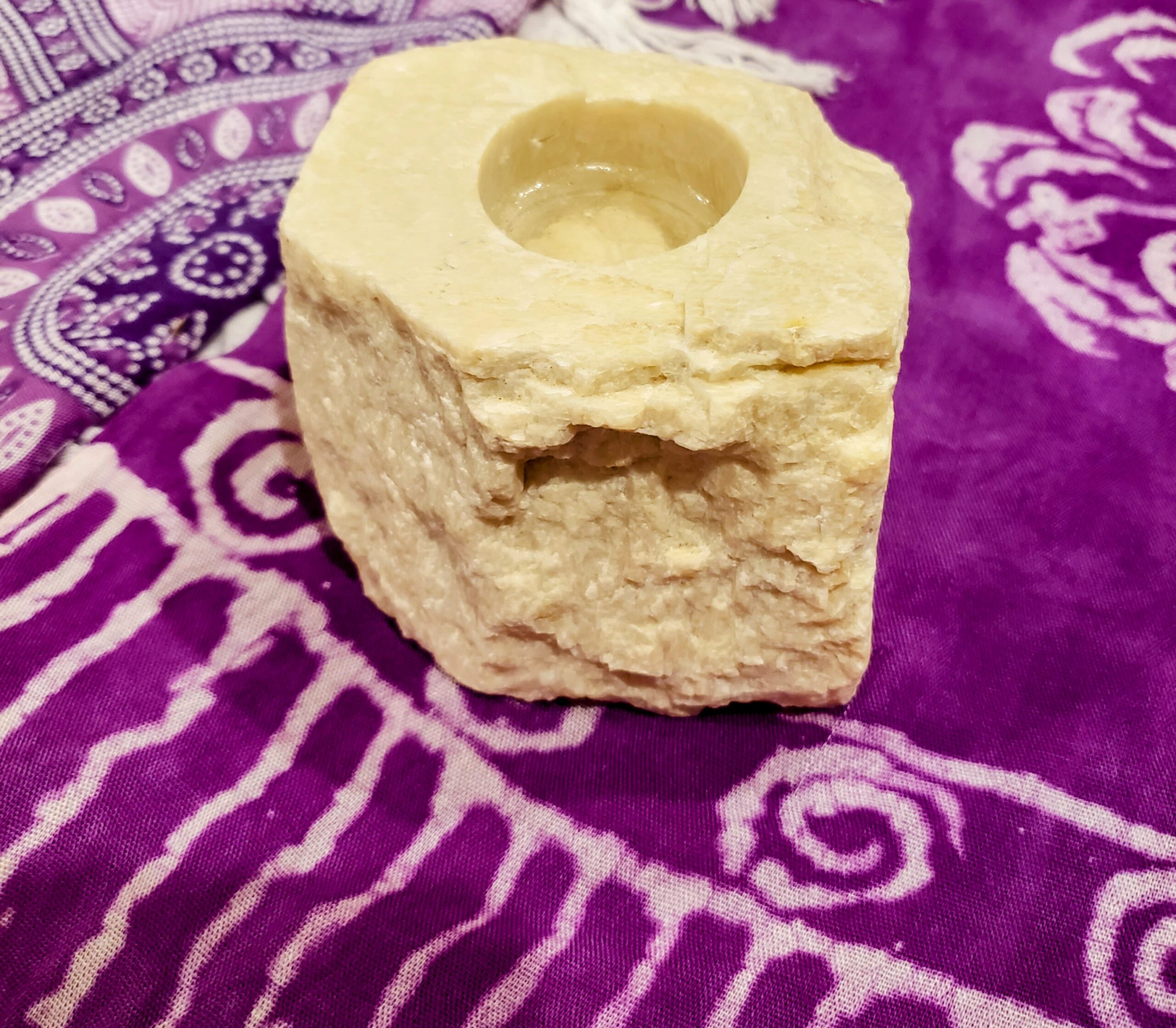 Natural Stone Candle Holder, has colors of light shimmering sand stone; holds tea candle.