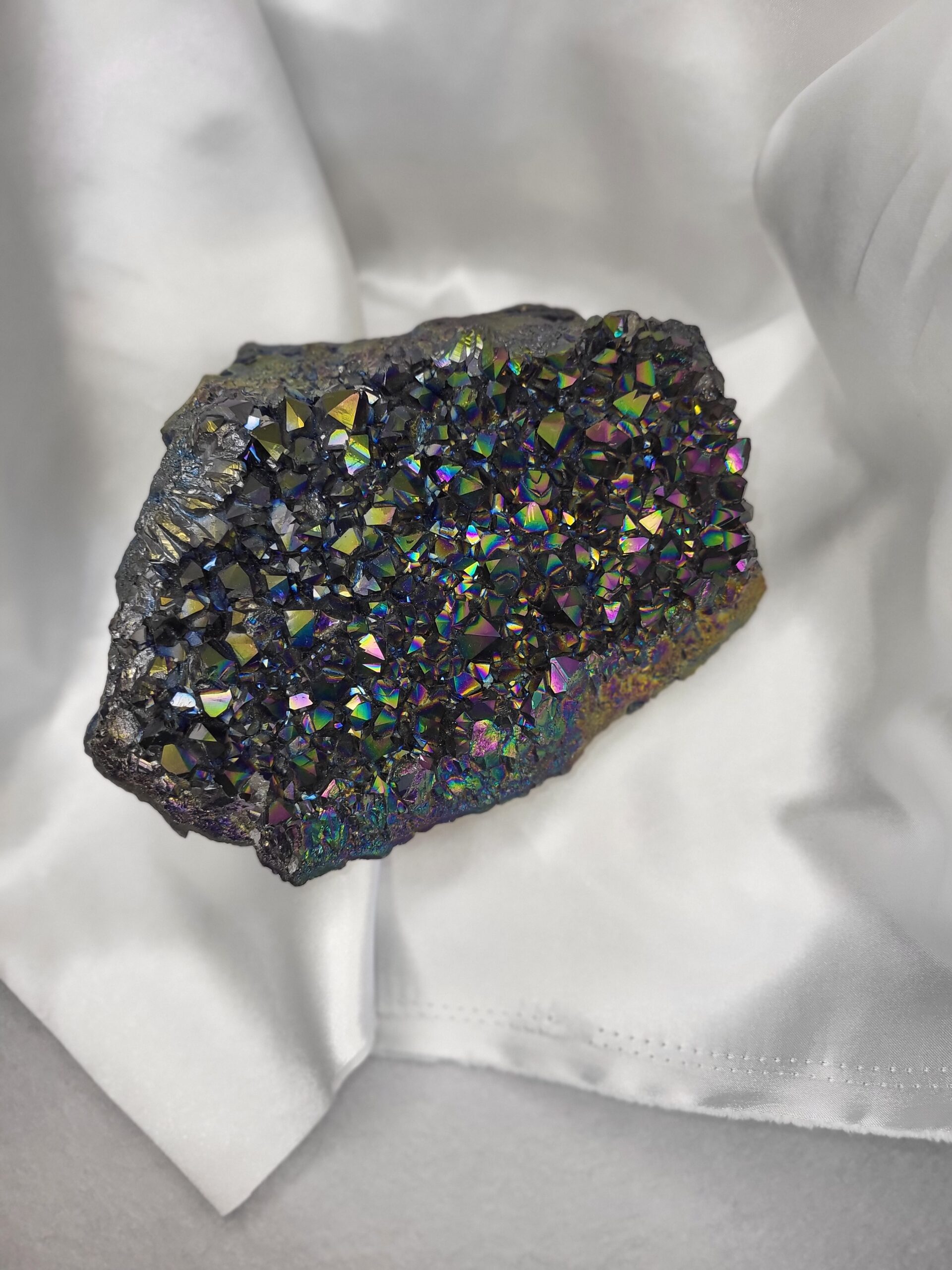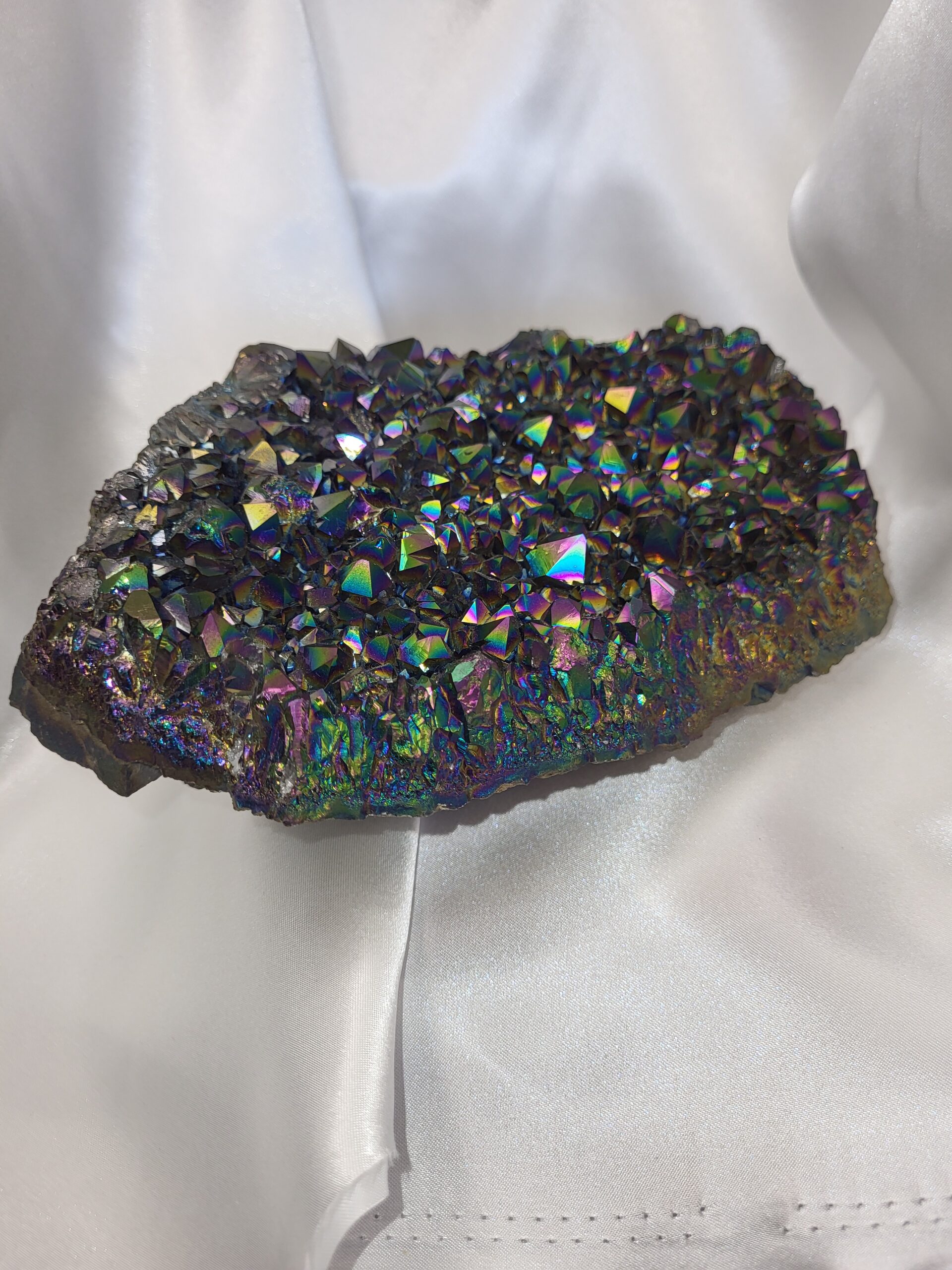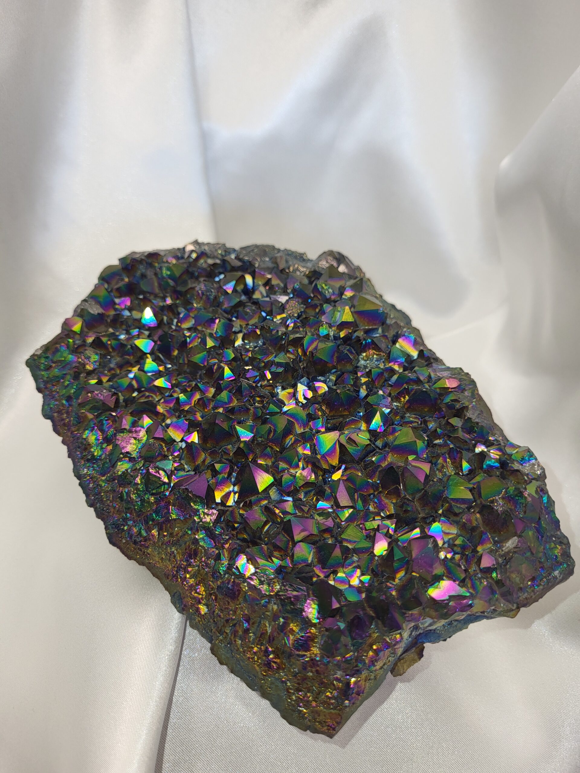 Rainbow Aura Quartz / Titanium Aura Quartz; 3.7lbs; Approx. length 6inches, width 7inches, height 2.5in