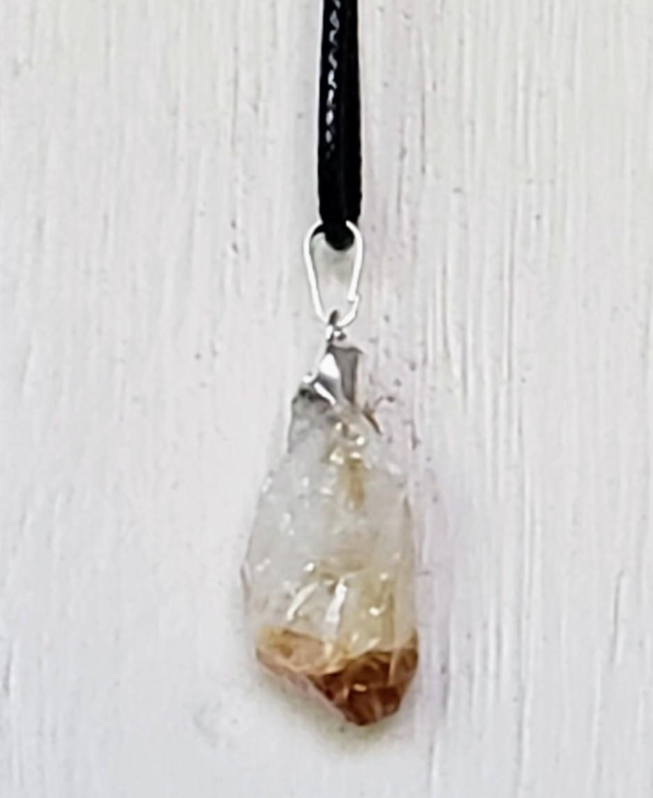 Raw Stone Pendent Necklaces: Citrine with 20 inch black necklace cord.