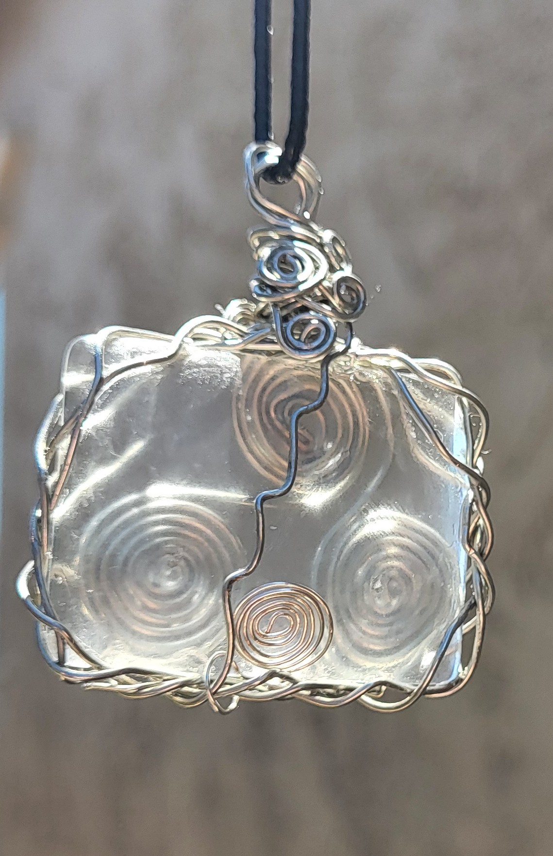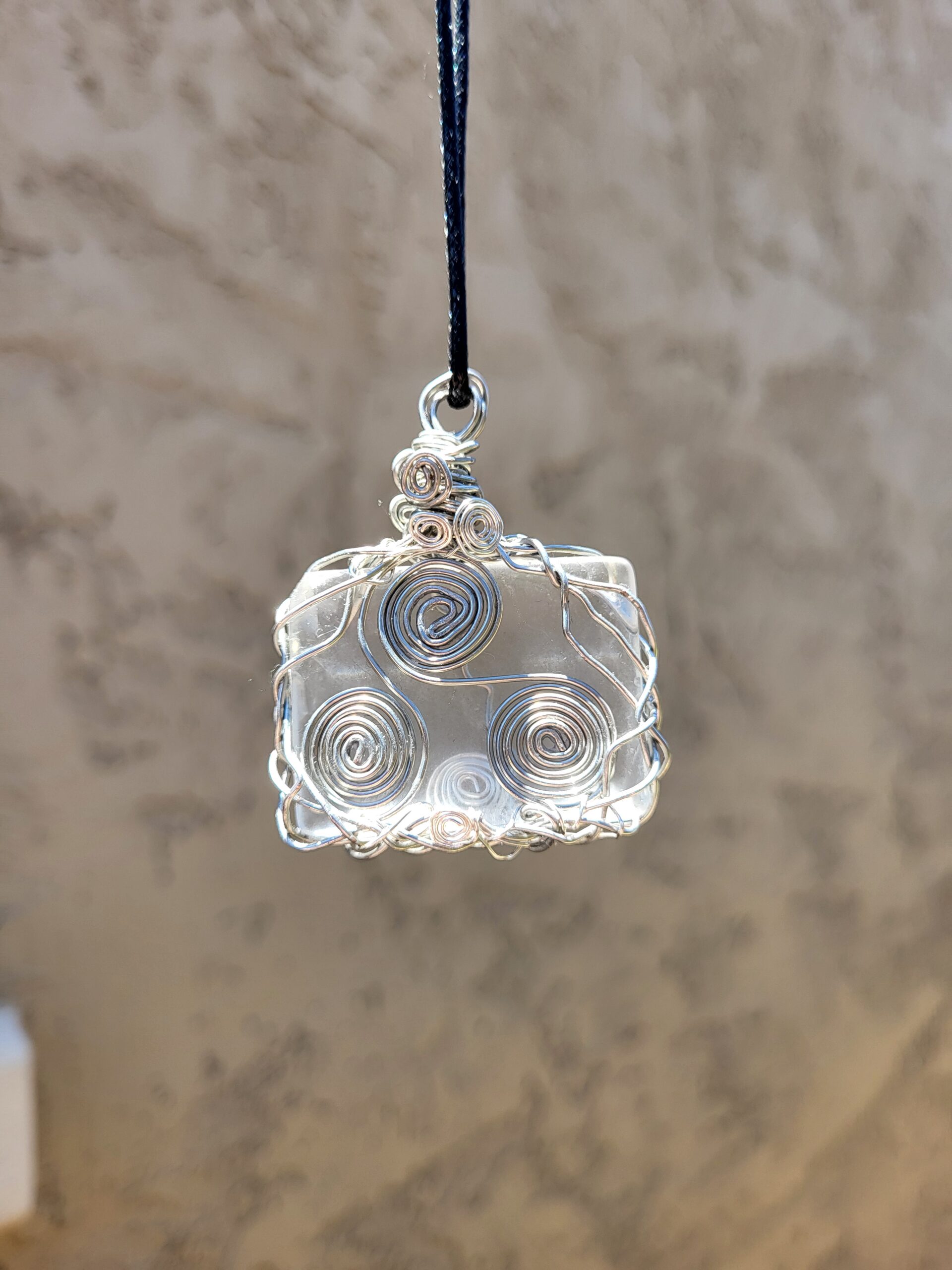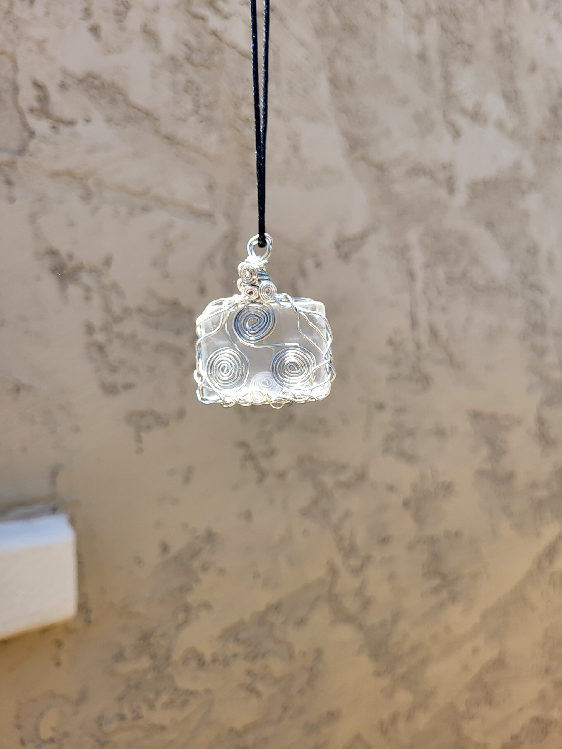 Be the first to review “Silver Copper wrapped Opaque Quartz, with Celtic Triskele, Pendent, 24 inch black cord necklace.”